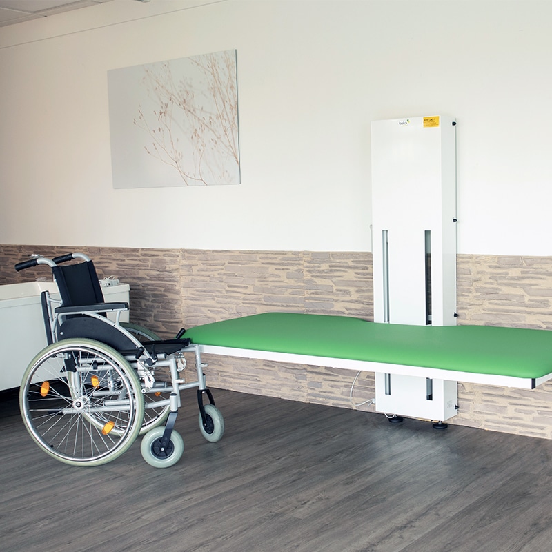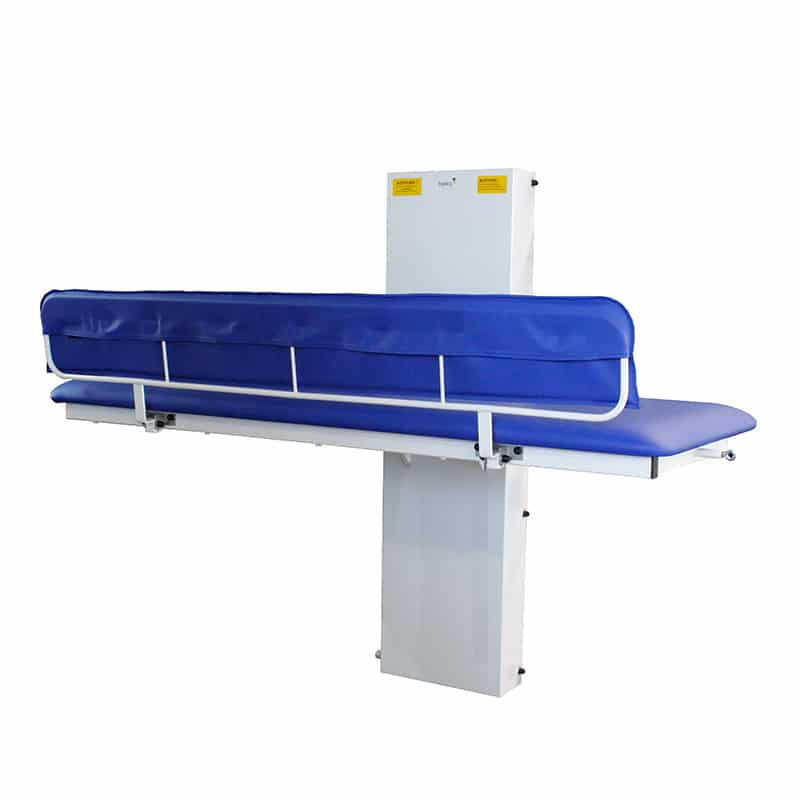 ANA is designed to assist with patient care in a safe and comfortable manner and is ideal for changing places environments. The large lifting range allows for easy transfers from wheelchairs and optimum working heights for everyday care. The surface features moisture-proof, soft, comfortable padding that can easily be wiped down by caregivers for disinfection. The low profile of ANA makes it suitable for smaller rooms where space is a concern. Due to its wall mounted construction, no substructure exists that can harm children or adults when being used. A foldable model is also available allowing for additional floor space.