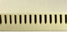 The middle layer of the Delta overlay has a series of unique, 5-sided cuts that allow the body to immerse into the pad, while presenting a flat surface to the patient. This flat surface may assist in eliminating breathing interference when the patient lies prone on the surface.