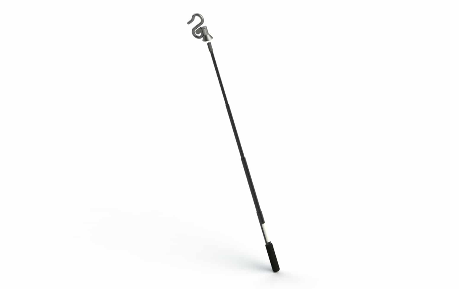 The Savaria extendable reacher aids in hooking the portable ceiling lift unit to the trolley. Designed with simplicity and safety in mind, the reacher is separate from the trolley hook to prevent the extendable arm from accidentally injuring the patient or caregiver. Now patients can move easily with ceiling lifts and other track systems.
