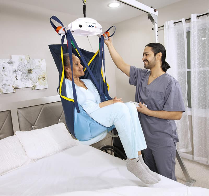 This is a lightweight yet durable freestanding track designed with both caregiver and client in mind. The FST-300 comes ready to use and can be assembled by one person in minutes – no tools required!