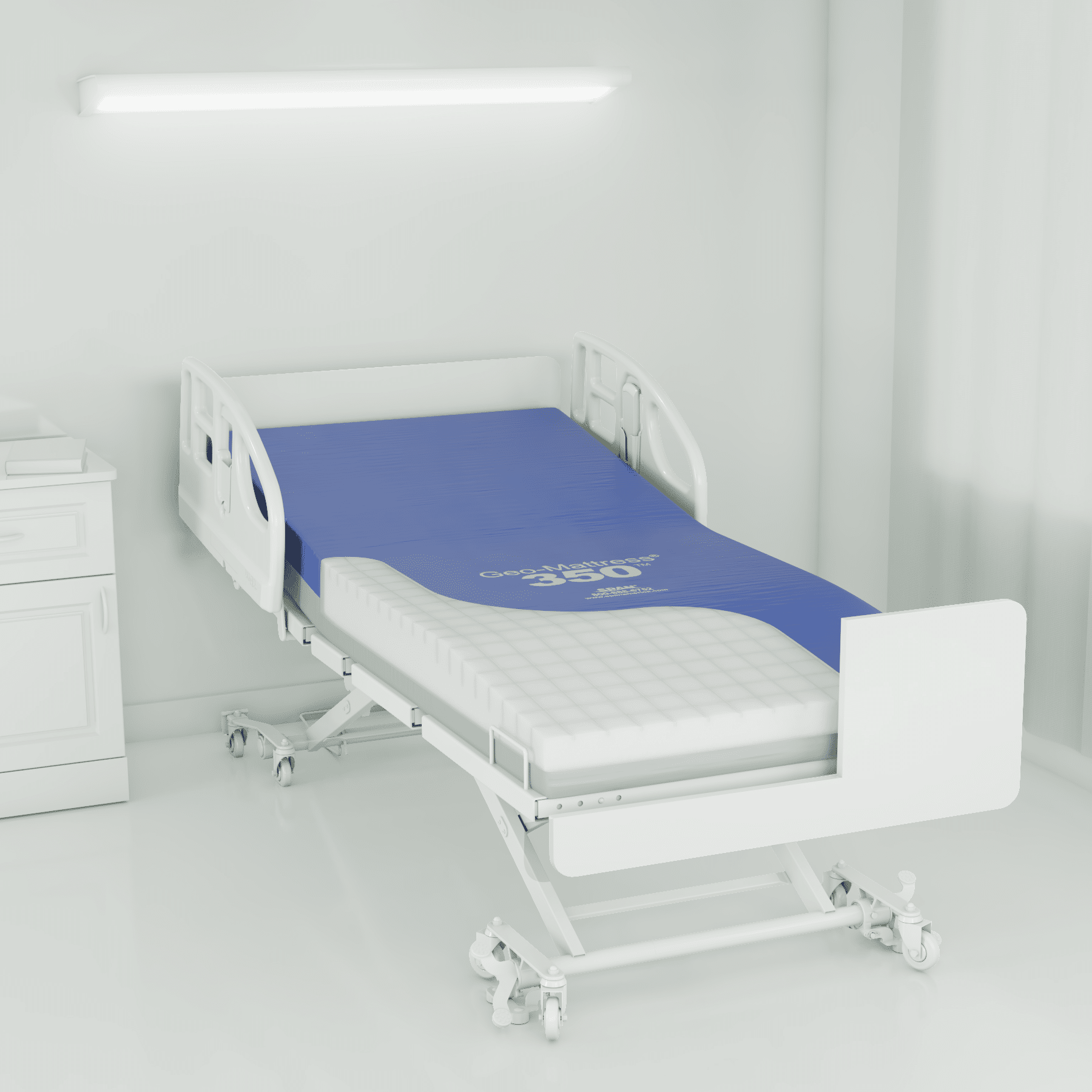 Segmented top surface, 6” height and fluid-proof cover make the new 350 a great choice for heavier home care patients. Or, an economical yet effective option for long term care residents. High-Value option meets multiple needs.