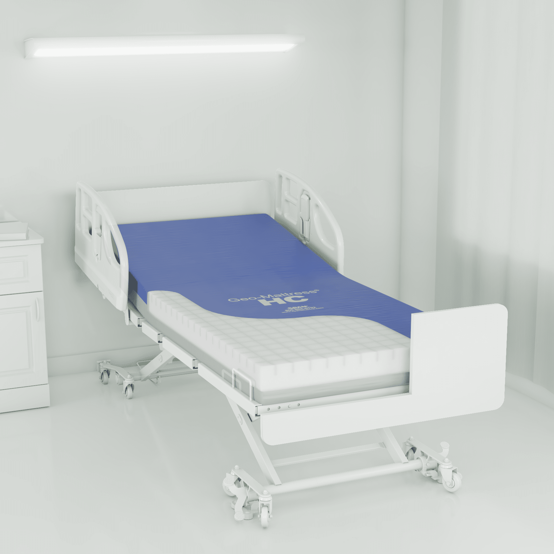 Specifically designed to aid in pressure injury prevention in the home care setting. Geo-Mattress HC is cut from a single layer of high-quality, combustion modified foam in a fluid-proof, nylon and vinyl cover. Cross-cut top surface is segmented in three distinct zones. Folded and boxed to save freight and storage.