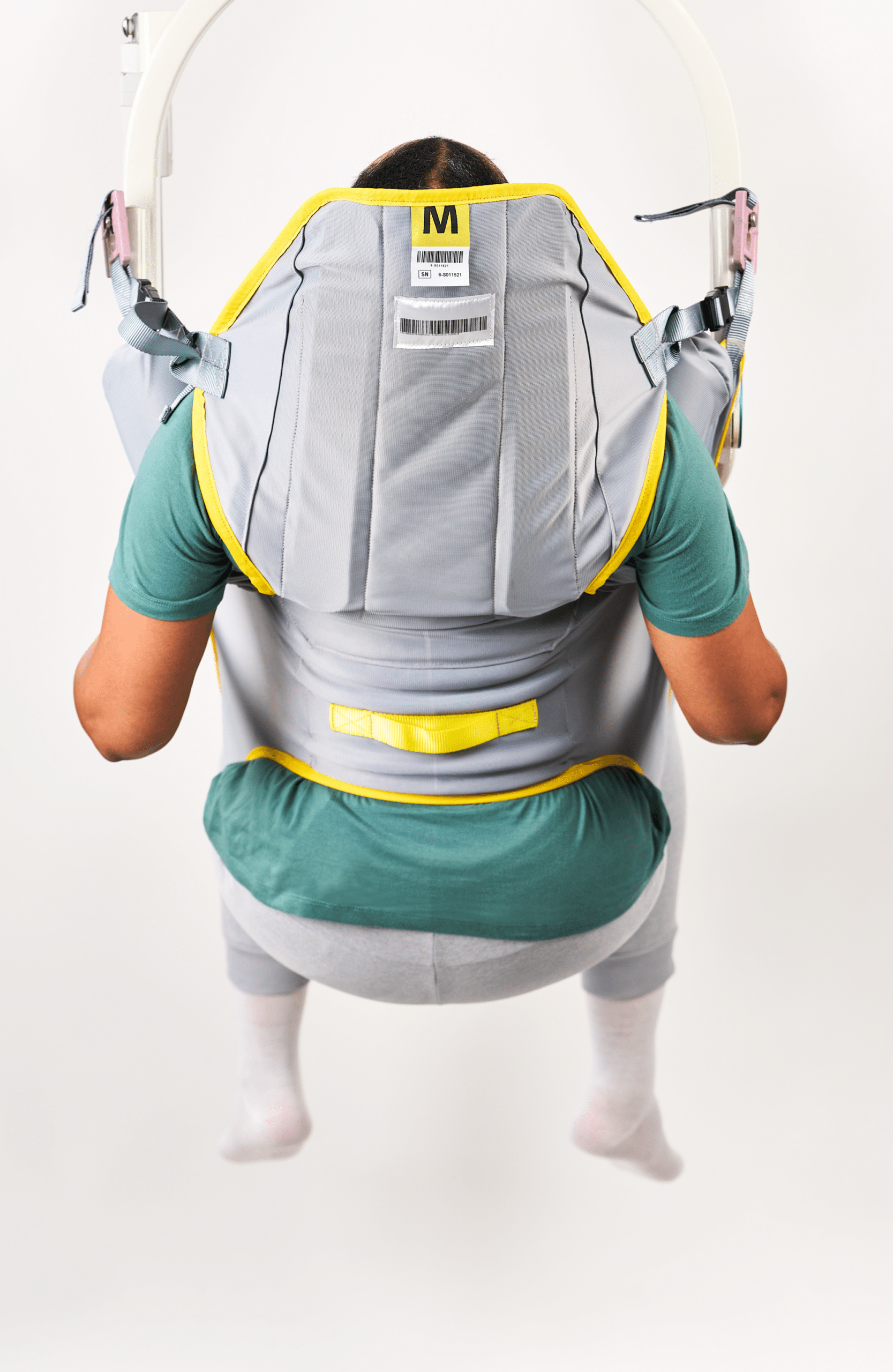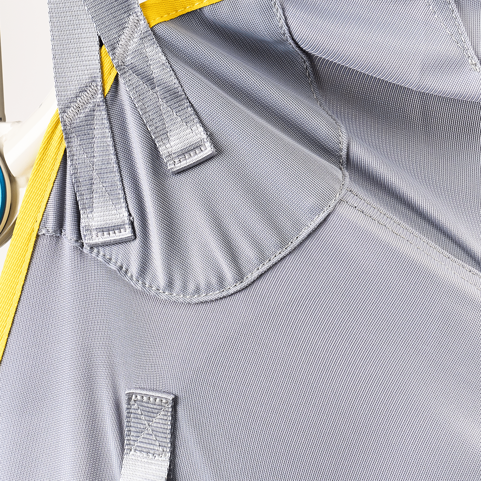 The Savaria Hygiene Sling with Clips is designed for safe and dignified toileting transfers for individuals with specific mobility needs. This padded sling features an adjustable head support for customized comfort and provides good access for hygiene purposes.