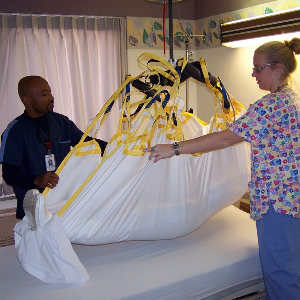 Making lateral transfers easier in one of three fabric options, the Medcare Repositioning Sling is designed to be left on the bed under the sheet. This breathable sling makes turning or boosting a patient simple.