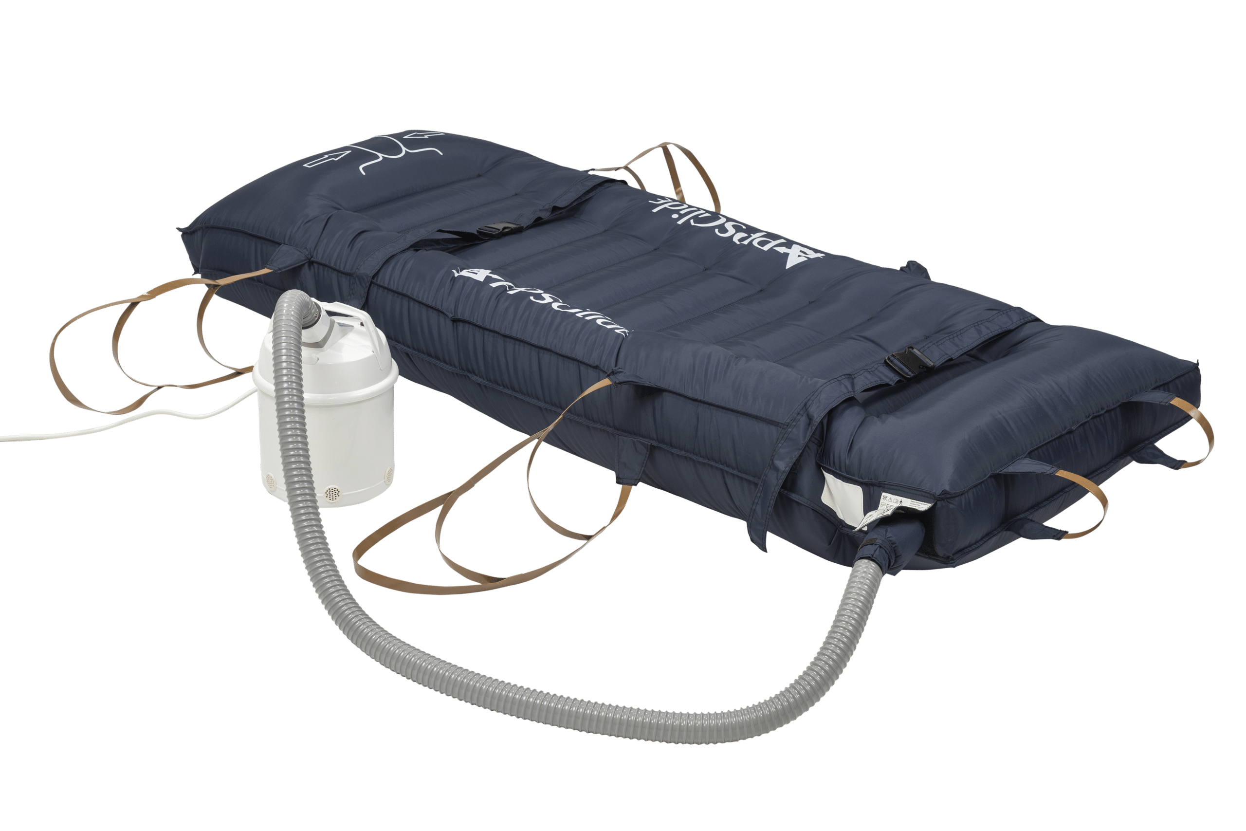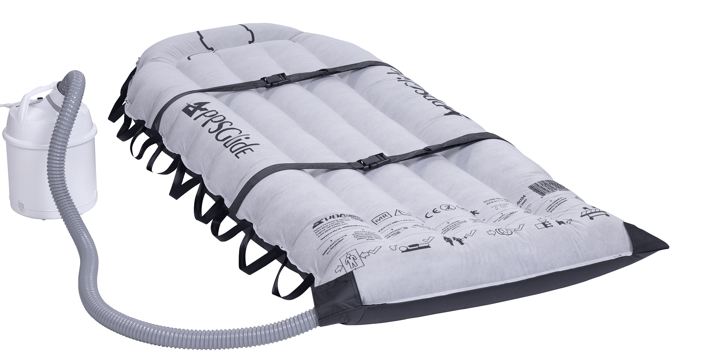The core of the system is an inflatable mat that lifts and floats the patient on a cushion of air.